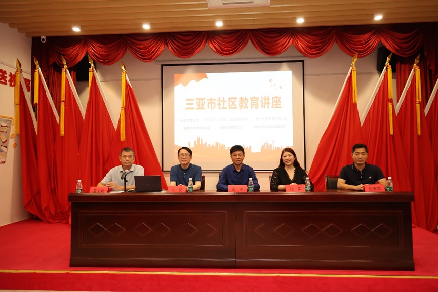 南京玄武区社区进修学院 业冰校长,南京玄武区社区进修学院办公室主任 沈青,三亚市教育局职成教主任 张光志,三亚市社区教育专家 黄丽华,三亚市社区教育指导中心办公室 林云鹤,海南社区公共服务协会会长 范高野,三亚市海棠区社区教育专、兼职干部出席了讲座。